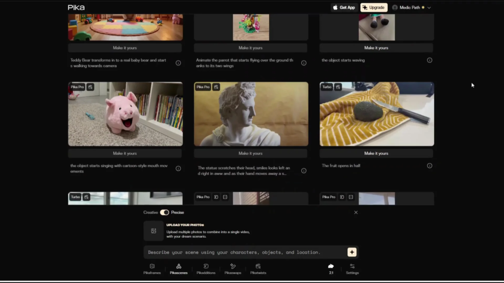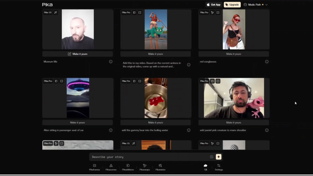Pika positions itself as a fast, playful idea-to-video platform that’s aimed at creators who want to pick quick, stylized shorts and animations. The product is designed around simplicity. All you need to do is type in a prompt, describe your story, and pick a style or a template, and Pika generates short dynamic clips optimized for social formats.