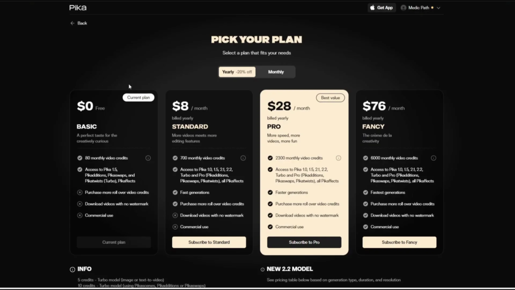 Pika AI pricing